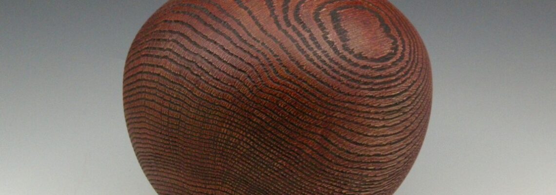 Turned and hollowed form. Oak deeply sandblasted, pickled and black patinating finish, 8.5″H x 6″Dia. x 1/8″ wall thickness.